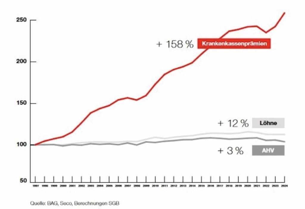 Zur Grafik: Während die Prämien für die Krankenkassen jedes Jahr steigen, sinken oder stagnieren die IPV-Beiträge.
