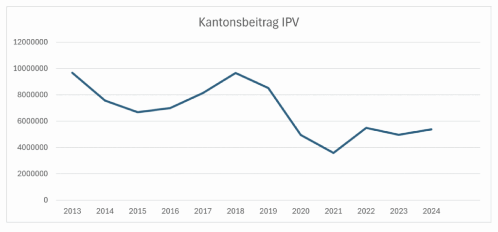 • Seit dem Antragssystem öffnet sich die Schere zwischen steigender Prämienerhöhung und sinkenden Beiträgen des Kantons für die IPV Unterstützung.